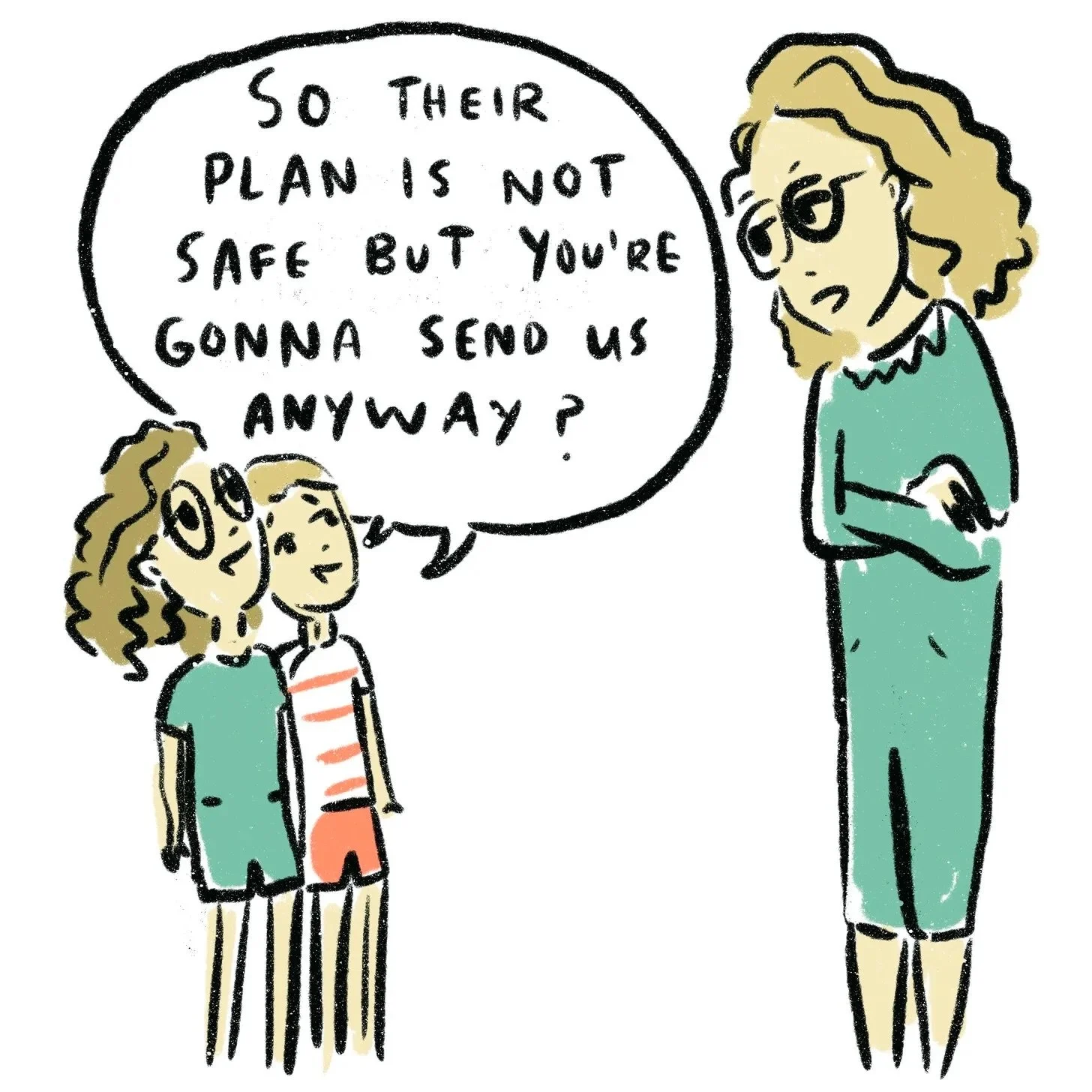 Ontario’s plan is still unsafe. It has no buy-in from stakeholders including parents, teachers, unions, public health or school boards. Please do whatever you can to pressure governments into doing the right thing, supporting teachers and school boards to work out how to mandate safer, smaller class sizes for everyone (in Ontario, you can call Doug Ford’s office at 416-325-1941).